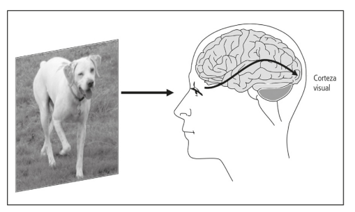 El diseño de las ConvNet, se basa en varios hallazgos fundamentales sobre el sistema visual del cerebro que hicieron Hubel y Wiesel en los años cincuenta y sesenta. Cuando los ojos se fijan en una escena, lo que reciben es la luz de distintas longitudes de onda que reflejan los objetos y las superficies de esa escena. La luz que llega a los ojos activa las células de la retina, que es básicamente una red de neuronas en la parte posterior del ojo. Las neuronas comunican su activación al cerebro a través de los nervios ópticos y así activan, a su vez, las neuronas de la corteza visual, que está en la parte posterior de la cabeza (figura inferior). La corteza visual está organizada aproximadamente como una serie jerárquica de capas de neuronas, como los pisos de una tarta nupcial, y las neuronas de cada capa comunican su activación a las neuronas de la capa siguiente
