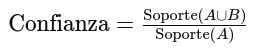 Confianza: La proporción de transacciones que contienen A y también contienen B.