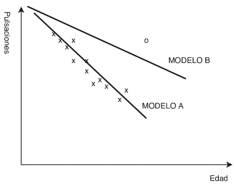 Como hemos explicado en el primer punto, los datos atípicos (outliers) pueden llevar a error en las conclusiones, haciendo inestable el modelo matemático. En el caso de los modelos lineales (se ajustan a la media de los valores) la existencia de un valor extremo le afectaría muy negativamente (desvirtuaría esa media) y, el modelo, ante datos nuevos, dará un resultado menos exacto. La figura inferior lo explica visualmente: el círculo es el atípico en comparación con el resto de puntos que son “x”. El modelo A, sin outlier, quedaría mucho más ajustado que el modelo B (con) a la media de la mayoría de los valores: