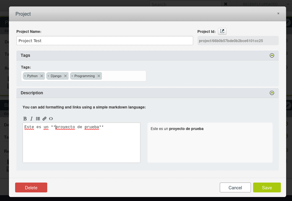 Si tenemos muchos tipos de recursos que te gustaría recopilar bajo un solo nombre, puedes crear un proyecto.