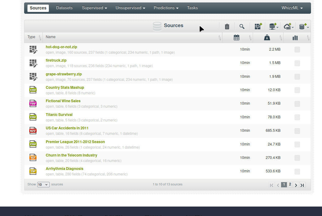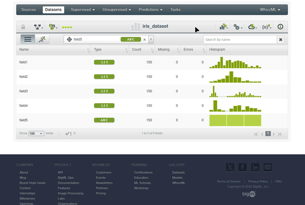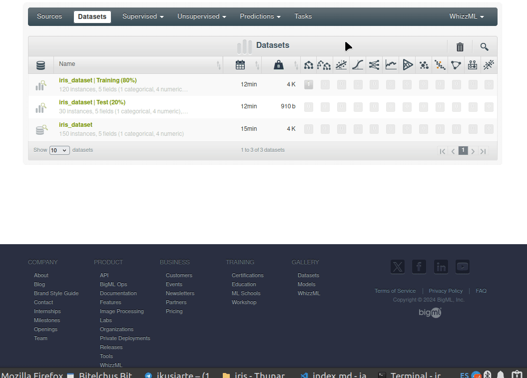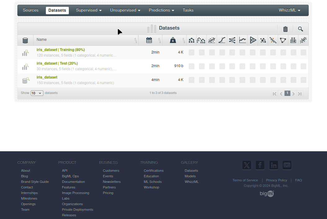 En esta sección, preparará su fuente de datos y su conjunto de datos para utilizarlos en BigML.