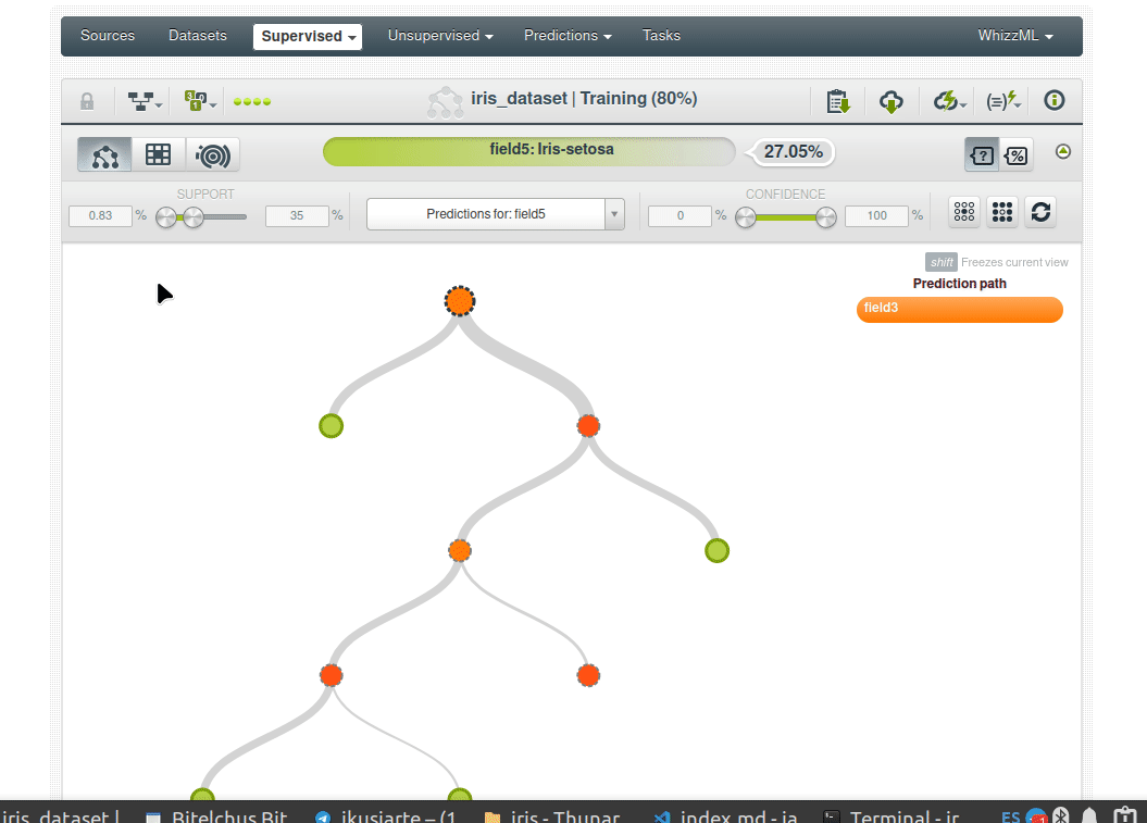 Pase el cursor sobre diferentes nodos del modelo para revisar el flujo de datos a través del árbol de decisiones.