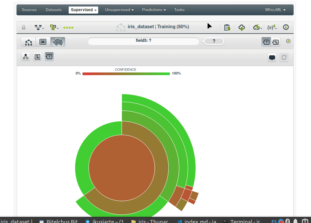 Haga clic en el botón “Sunburst” para abrir la vista Sunburst del modelo y explorar el árbol de decisiones.