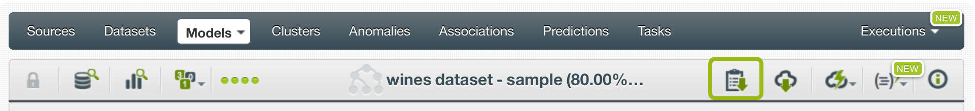 Desde la vista de detalle de un modelo, puede acceder al informe de resumen del modelo haciendo clic en el ícono resaltado en la figura: