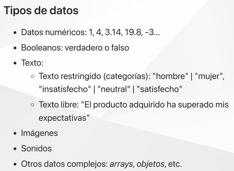 - Discreta: acepta valores permitidos dentro de un conjunto (clasificación).