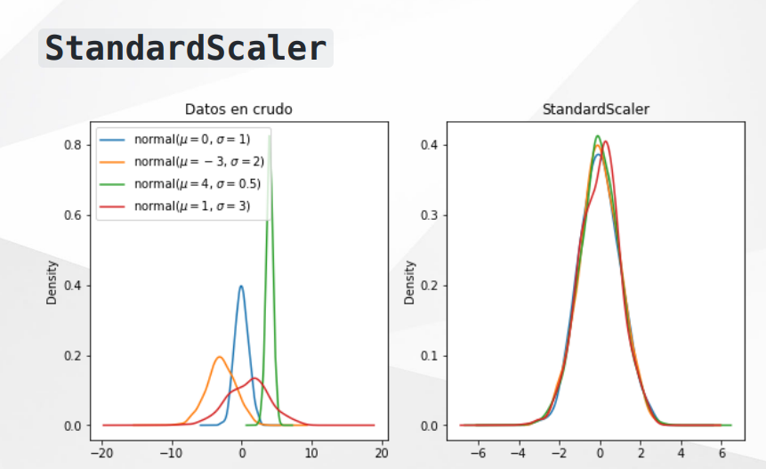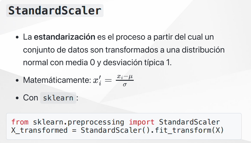 Recuerda que StandardScaler se utiliza para estandarizar características numéricas continuas. Si tienes características categóricas o características binarias, debes considerar otras técnicas de preprocesamiento de datos.